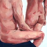 “Intermission” is a smaller painting of a snapshot between poses at a figure drawing session. It follows the type of nude poses that I am most drawn to: natural, cropped, and not too explicit. I prefer to leave characters and stories to the imagination, while providing the colors and shapes to jump-start the atmosphere of the scene.